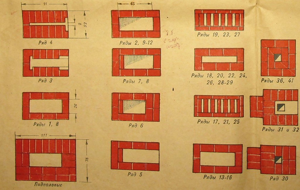 С укладкой дров проще...далее будут схемы печей из альбома, топливники и щитки.