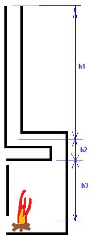 Еще, мне видится, что считать надо от оголовка до перехода трубы в другую конструкцию, но ни как ни до колосниковой решетки. Взять хотя бы вот такой пример. До среза О давление будет расти как в воздушном шаре. Стало быть расчет заключается в том, чтобы подобрать трубу компенсирующую рост давления в нижней части.