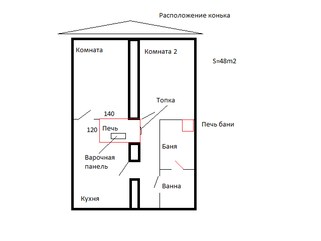 Посоветуйте систему отопления. Дом двухэтажный, проживание наездами по выходным. Стены блоки бессер 1/2 блока + 50мм вата + кирпич. Потолки 2.7. Площадь 1го этажа 48м2. Сообщения со вторым этажом нет (лестница в крыльце). На первом этаже пол - бетонные плиты. Посередине дома капитальная перегородка. В ней сделан проем 120мм под печь. Под плитой на месте печи отлит мощный бетонный куб 120*130. В доме ванна+парилка со своей печью. На пол планирую положить пенополистирол и сделать стяжку.