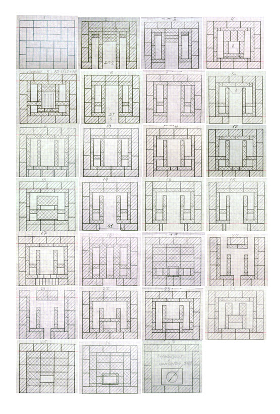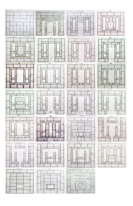 Если вы имеете в виду то что отмечено красным на порядовке, то я обозначал так кирпич на ребро, он ведь высотой 124 мм почти на 2 ряда. Обратите внимание: 8 ряд перевязан с 6 и 7 но он все равно на ребро просто высоты уже ушли. Т.е. 2 и 3 ряды это один и тот же кирпич на ребро, 3 и 4- тоже. просто не знаю как еще это изобразить на порядовке. А вот с 15, 16 и 17 действительно дал маху не заметил- исправлю выложу. Есть ли замечания по самой конструкции печи?
