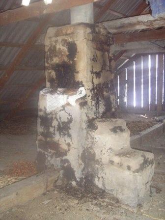 | Дымоходная труба на чердаке сзади. |