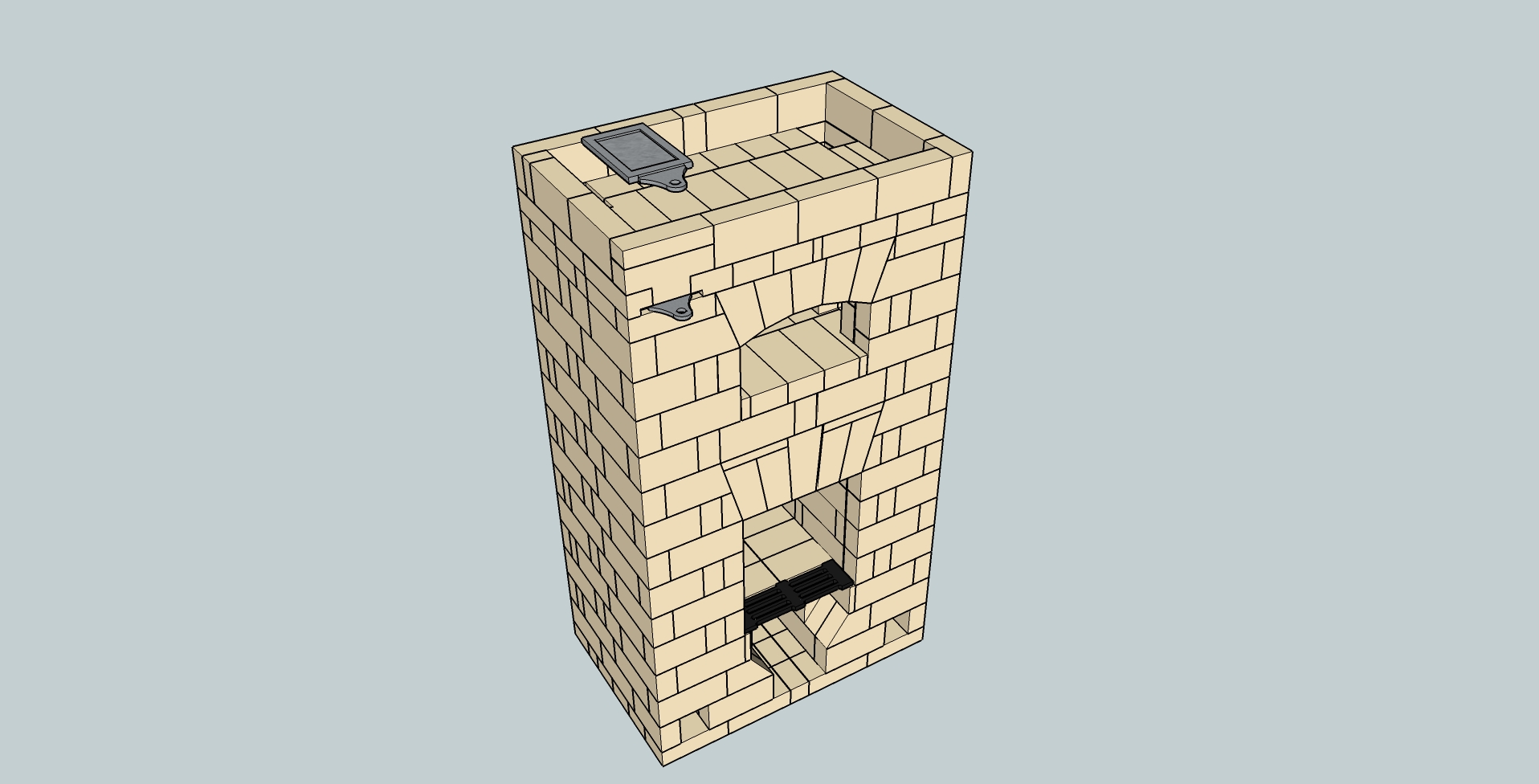 | Кирпичь над ХК прочистка. Ещё две по бокам (экономил на чугунине).Плиты не использовал( у нас их просто не найти). |