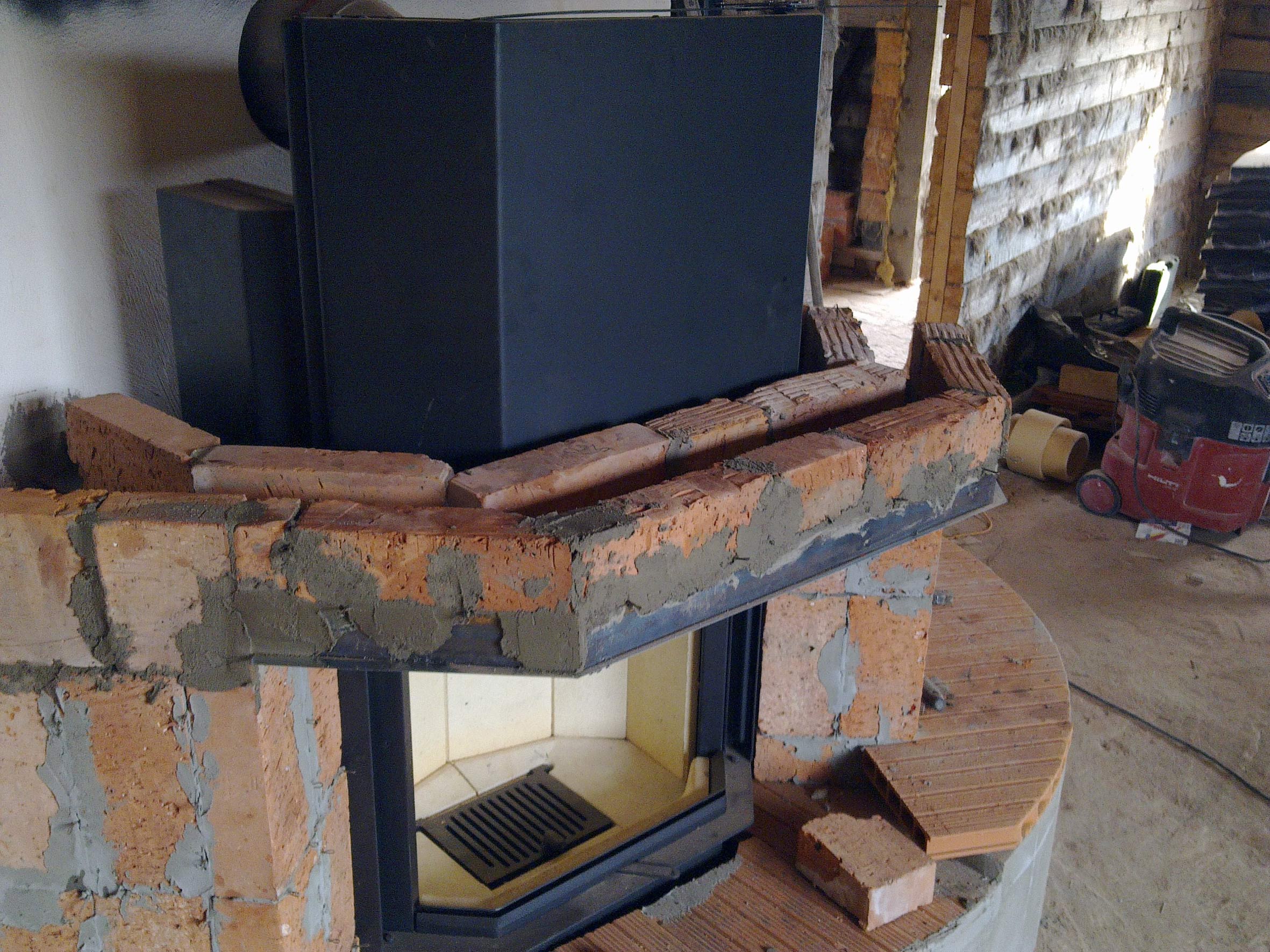 Камин в стиле "Кантри" сделан на основе каминной топки Schmid Pano 67 h .