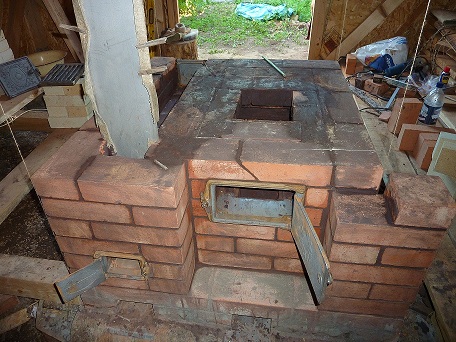 приступил к печи, печь по сути отопительно-варочная с камнями на чугунной плите