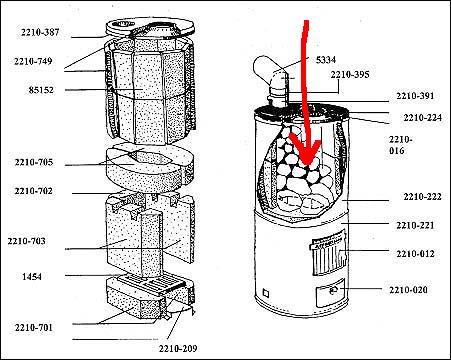 Минусы- большая пожароопасность дымохода т.к. на выходе из печи факел 800-1 000 гр С, нет большого аккомулятора тепла по сравнению с КП, ежегодная смена камня в каменке.