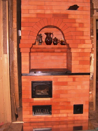 Я хочу, чтобы она имела такой вид, как на фото и при этом можно было на ней готовить и чтобы она хорошо грела кухню и холл. Помогите определиться с порядовкой!!! И объясните пожалуйста для чего справа от плиты такая толстая стенка, если там не дымоход?! Ну очень мучает вопрос как она сложена!!!