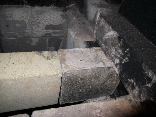 | Вместо них устанавливаем целый кирпич ША8 и 3/4 формируя горелку |