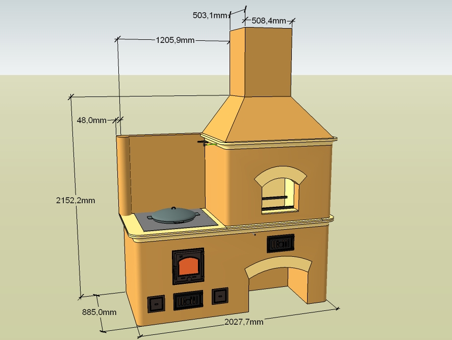 В идеальном варианте - хотелось бы духовую-печь мангал и плиту для азиатских казанов c единой трубой описанные в книге «Уличные очаги, камины, печи» сост. В.В. Селиван, В.И. Рыженко, схемы на стр. 372 и 373 соответственно. Очень нравятся печи по задумке автора, можно обеспечить практически любые температурные режимы приготовления блюд. К сожалению, две этих печи не поместятся в моих габаритах. Слишком узкий фундамент. В качестве альтернативного варианта меня устроил бы уличный очаг — барбекю стр. 370 и плита под казан, придуманная Александром из Омска http://aleksandr-ta1.narod.ru/. С единой трубой. Жаль, что не будет функции русской печи и казан менее равномерно будет нагреваться — но это плата за маленькие габариты. И по-другому наверное нельзя?