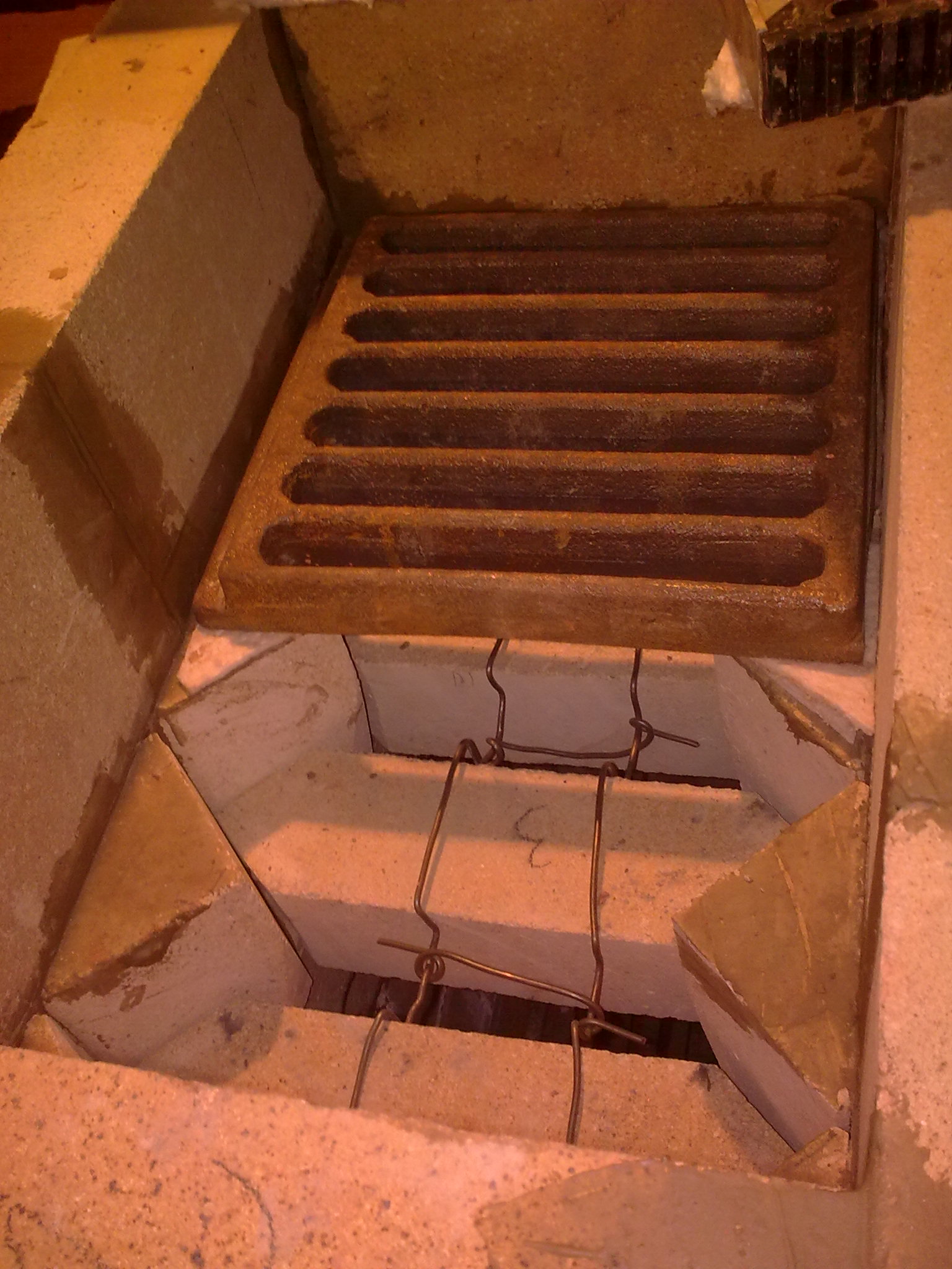 через проставку по периметру камеры выше катализатора еще на 6 см уложить разряженный колосник и на него уже каменную засыпку