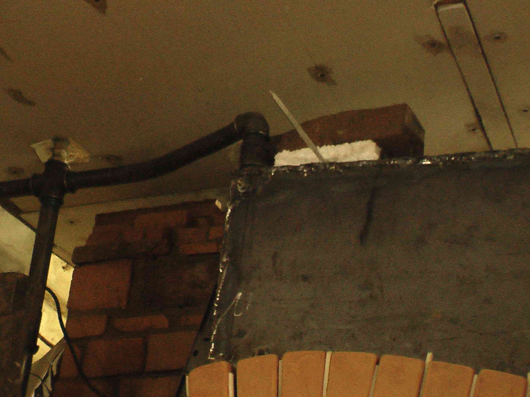 Далее, в первом опускном на рёбра положил кусок асбеста, прижав кирпичём.