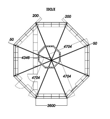 Вы абсолютно верно подметили. Я прилагаю план первого этажа и сектор с лагами пола(они же и лаги потолка). Нужно попасть трубой не в стропилу. Лаги пола будут заливаться фундаментом, лаги потолка будем вырезать. Печь так же желательно разместить внутри сектора как можно ближе к центру.[/quote]