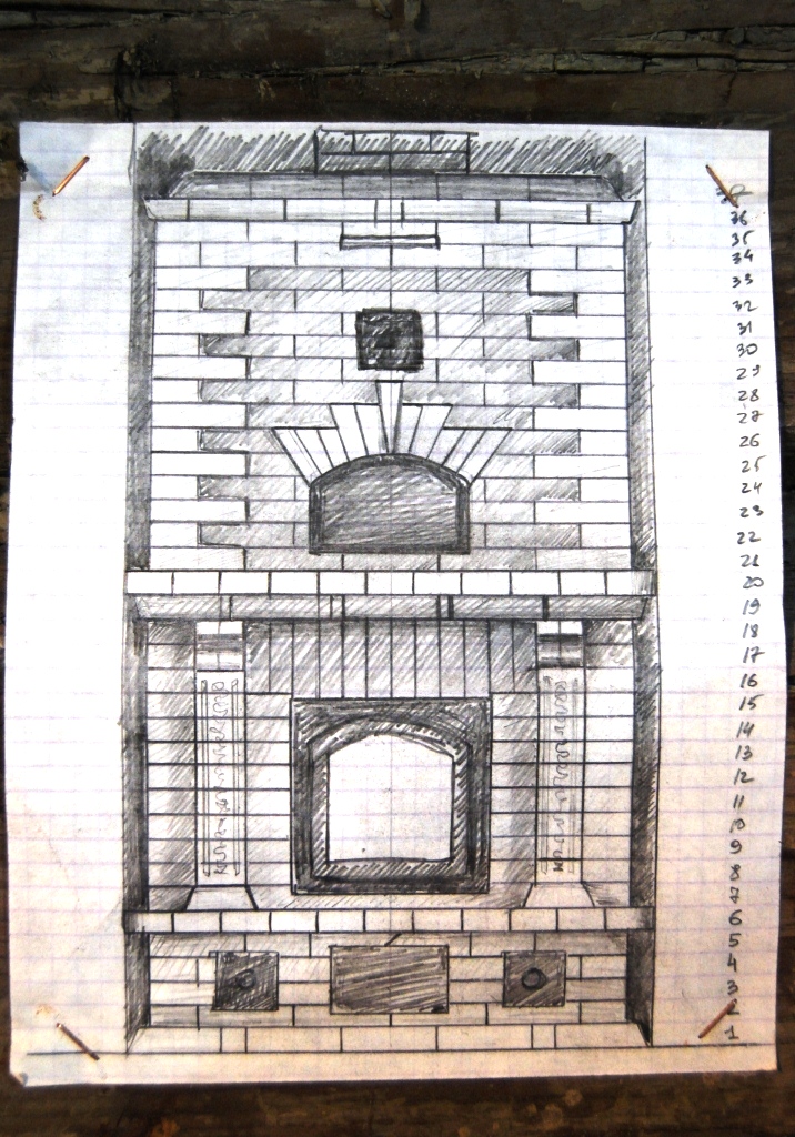 Печь строится в реконструируемом деревенском доме, стены сруб ( старый), утепленный снаружи. Печь ставится в большой комнате, отапливает 1 этаж, 2 этаж будет отапливаться конвекцией от печи посредством конвекционной камеры пристроенной к задней части печи.