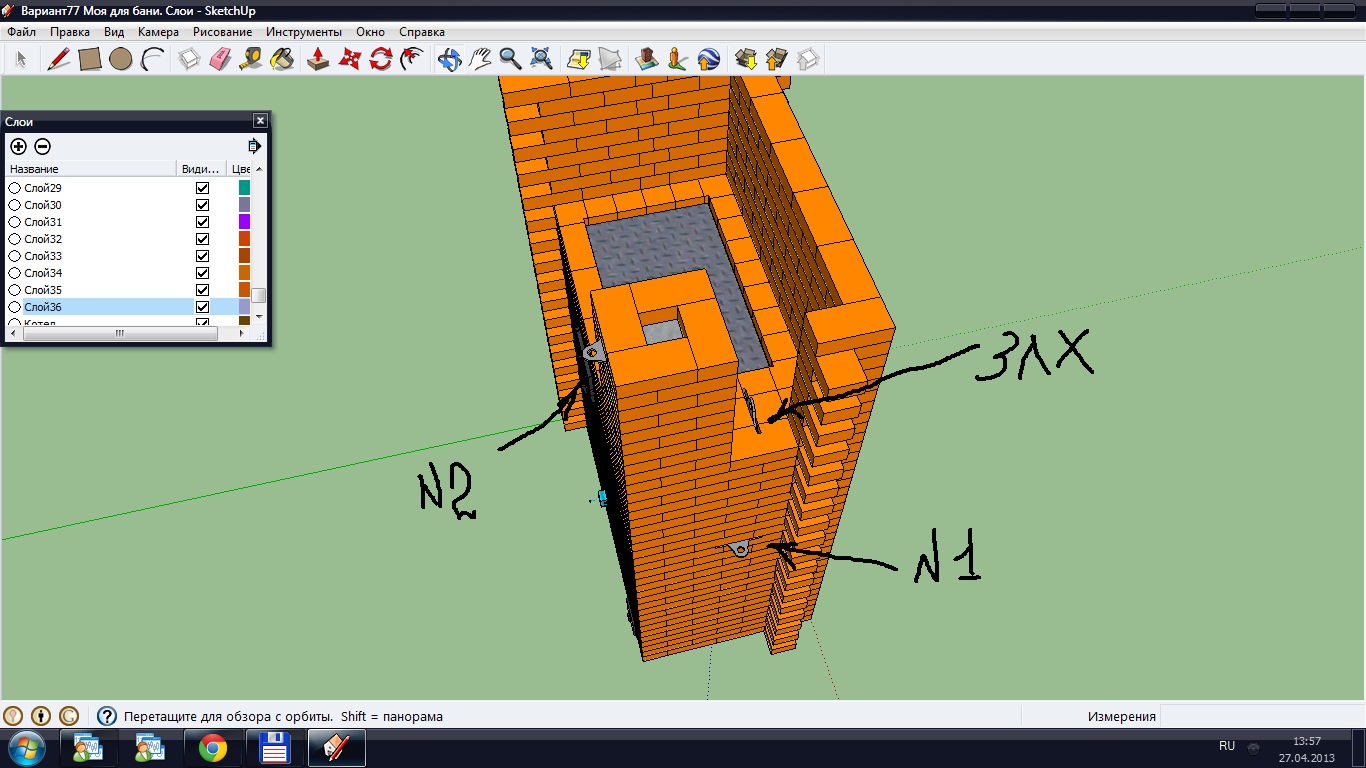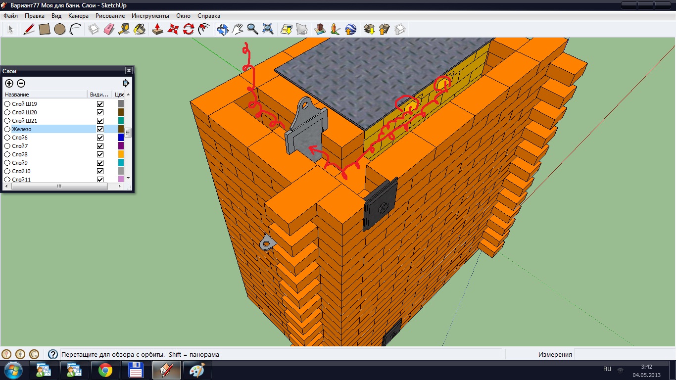 Сейчас думаю над каменкой. Есть мысль сделать в ней под сплошной ... из чугунных брусков. Пока вывешиваю задвижки.