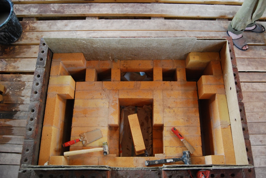 Завели подину из шамота, по наружке начали обрезаться под фурнитуру