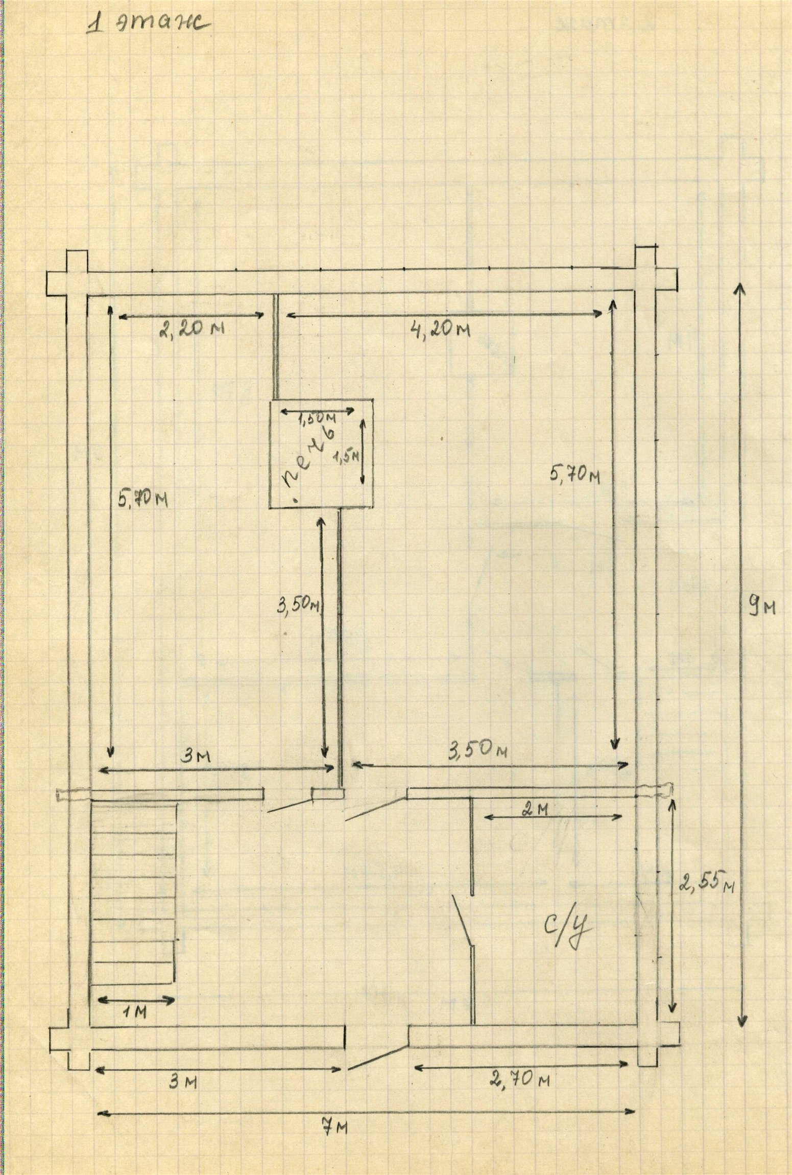 Вниз опускай печку по чертежу и когда рна ударится об стенку поперечную там ей и место.да так все три комнаты будет греть. ДРОВА не надо через весь дом таскать.Заложи 2-3 вентканала и один на дым.Капитальную стену лучше из кирпича делать 38 см.