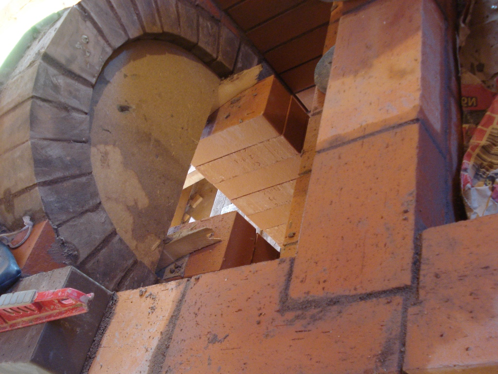 На этом фото видно, что перекрышку над сводом мы опирали на уголки 45-ку на внешнюю кладку (с зазорами на терморасширение).