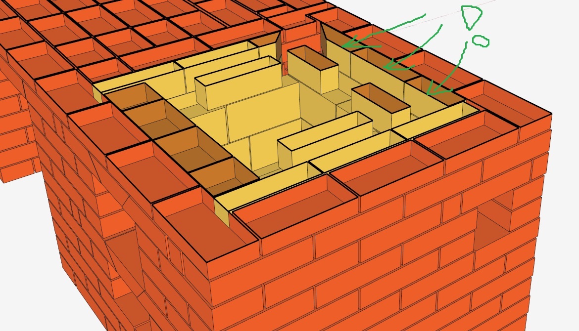 Завтра планирую доделать до верхнего уровня казанницы. Завтра же попробую начертить на деревяшках арку.
