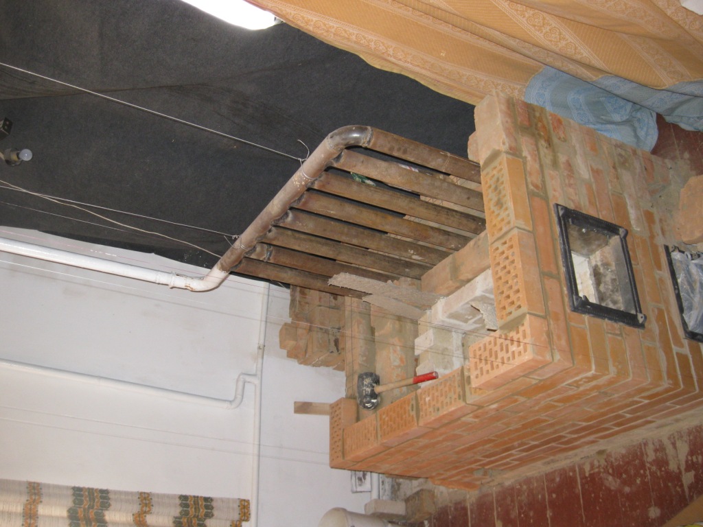 Эту проблему удалось решить увеличением высоты подвертки – выбив пол кирпича через дверь сажотруски.