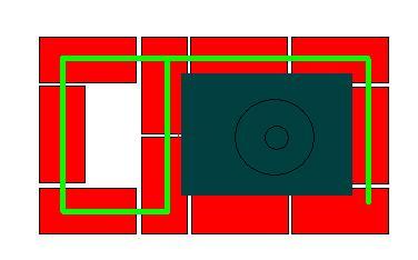 Место укладки показано зеленой линией.