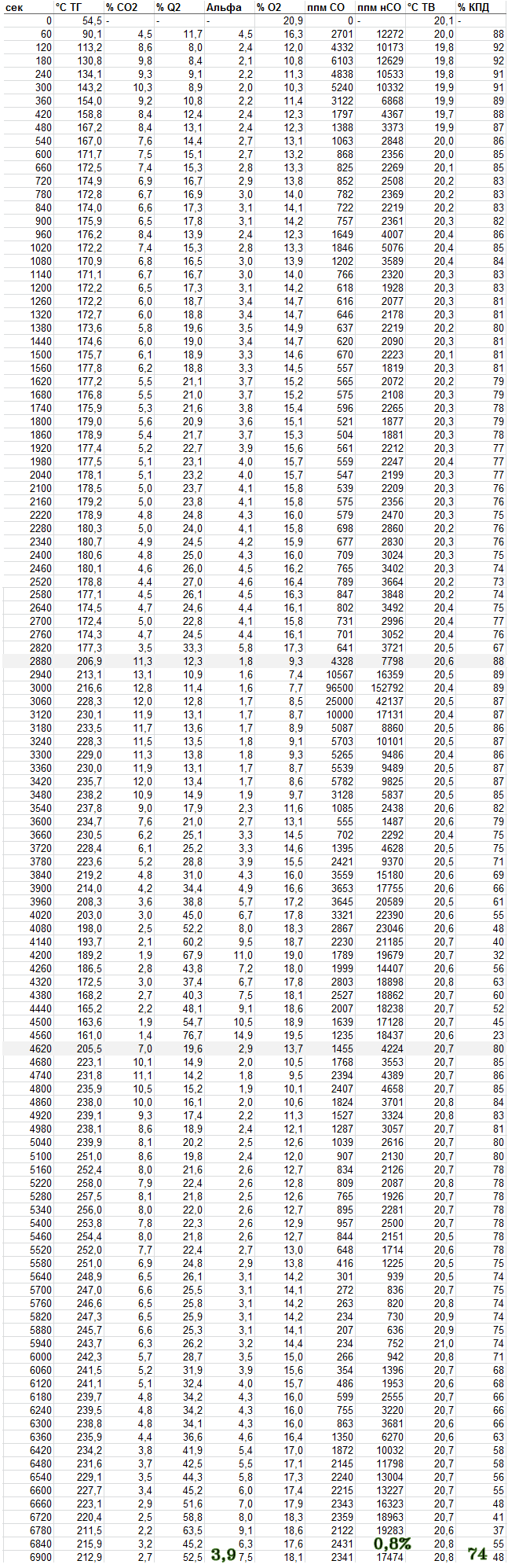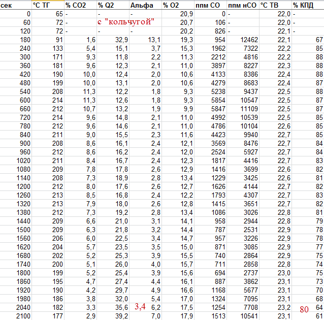 - СО неразбавленный (приведенный к 0%О2) понизился в два раза - с 1.35 до 0.63%