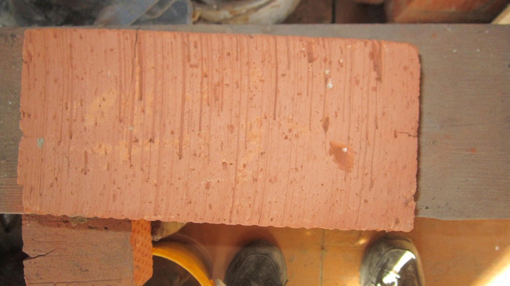 Кирпич был однотонный,а этот весь в пятнах,кривой с большими заусенцами.