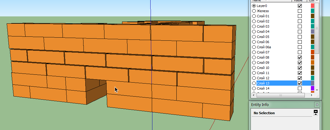 Есть возможность окрашивать срезы кирпичей. Полости они пустые...  |