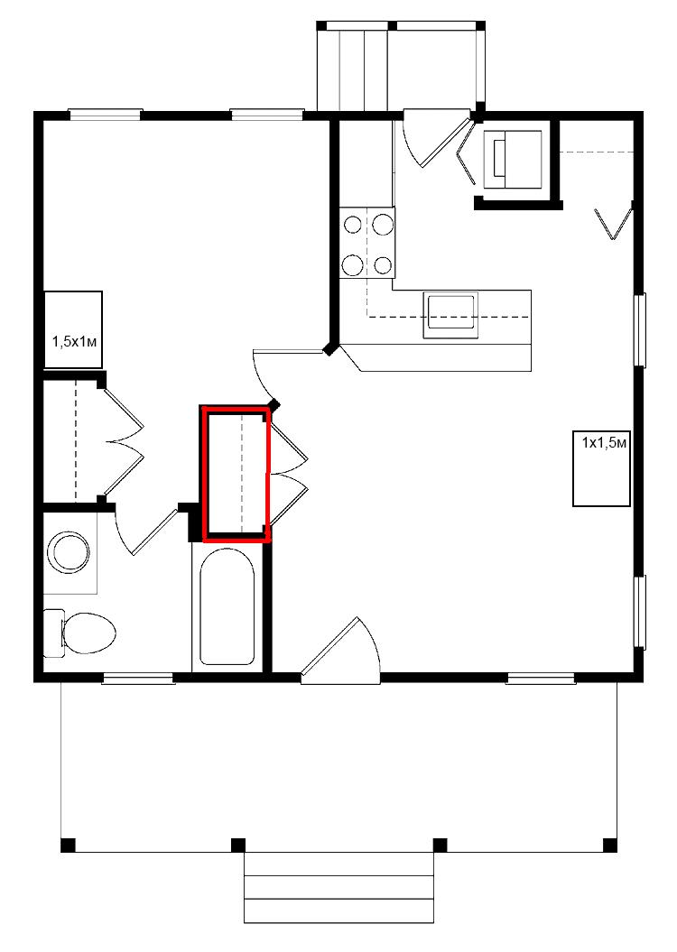 а на месте встроенного шкафа камино-печь "сдюжила" бы в одиночку весь домик  |