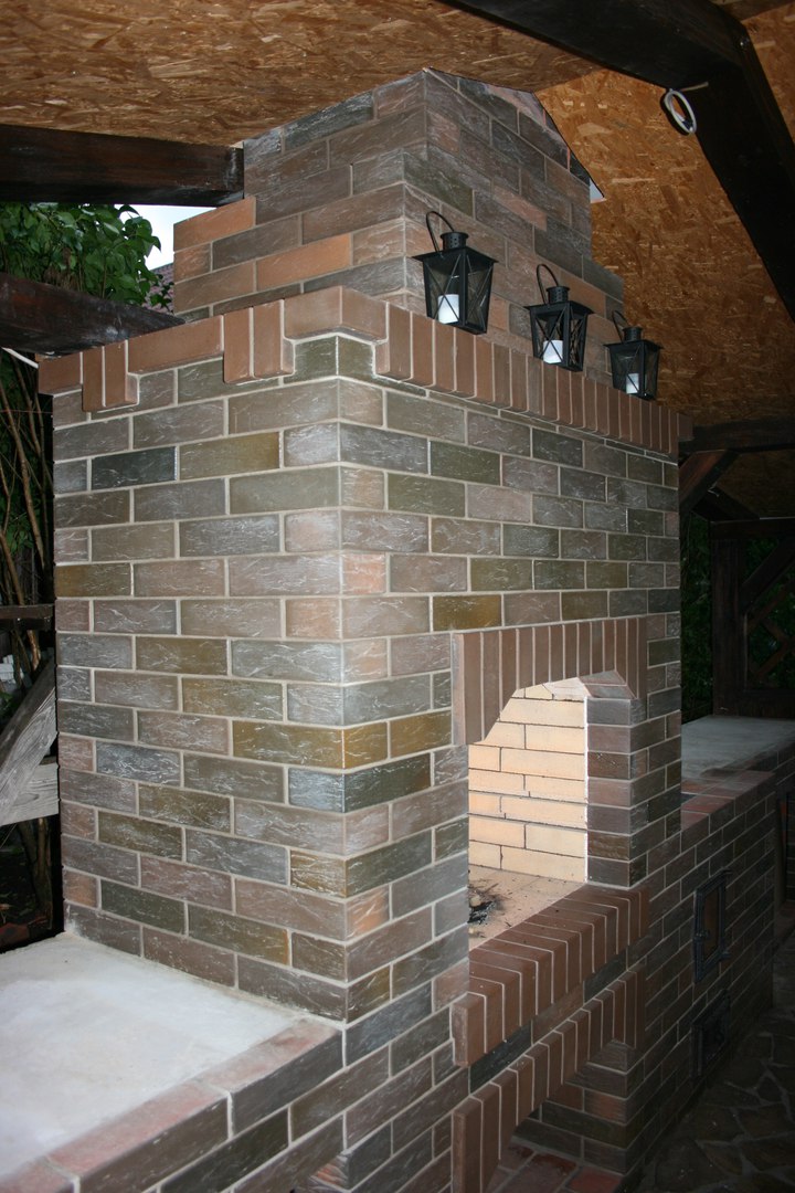 Прошел почти год как наблюдал за ним мангал стоит под навесом все циклы года пока держит .,трубу решился пока с него делать но с гильзой и в коробе. Все напуски и карнизы то что не фасадная часть заменили на коричневую Победу ЛСР так как кирпич покрашен видна краснота это косяк. Пилиться как Кировочипецкий на ура кривой косой до 5 мм разброс углы развернуты -работать можно но много надо калибровать . На фото напарник Илья .