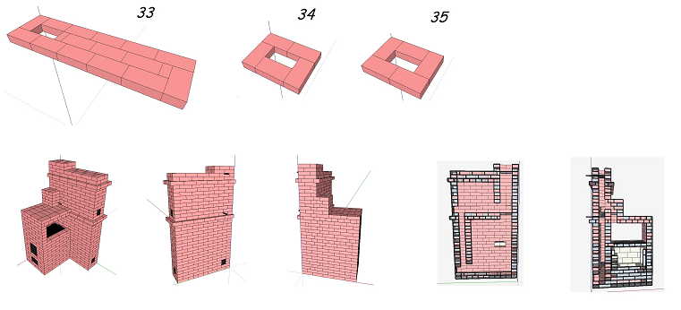 В 3-4 одна прочистка лишняя. Выше подвертки всё-таки перевязка в данном случае (первый колпак) желательна. Но основное это колпак без футеровки, напротив хайла затрещит.