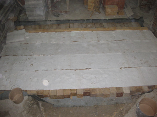 Мой небольшой опыт показывает: хорошие результаты дает использование газосиликатных перегородочных блоков(500х500х100). Печка, построенная прошлым летом и эксплуатируемая сейчас постоянно сохраняет температуру стены (у фундамента) около 20 градусов более 12 часов (топка двухразовая, т.к. дом деревенский неутепленный). Заявленная заводом-изготовителем прочность 8-10кг/см.кв. вполне достаточная для печи 5х5 кирпичей по периметру и высотой 24 ряда. Брал 5 блоков. Один распилил на 4 бруска для закладки между четырьмя плитами. Нижний ряд печи выкладывался прямо на газосиликат с использованием ГПС. Так что я за газосиликатные блоки.