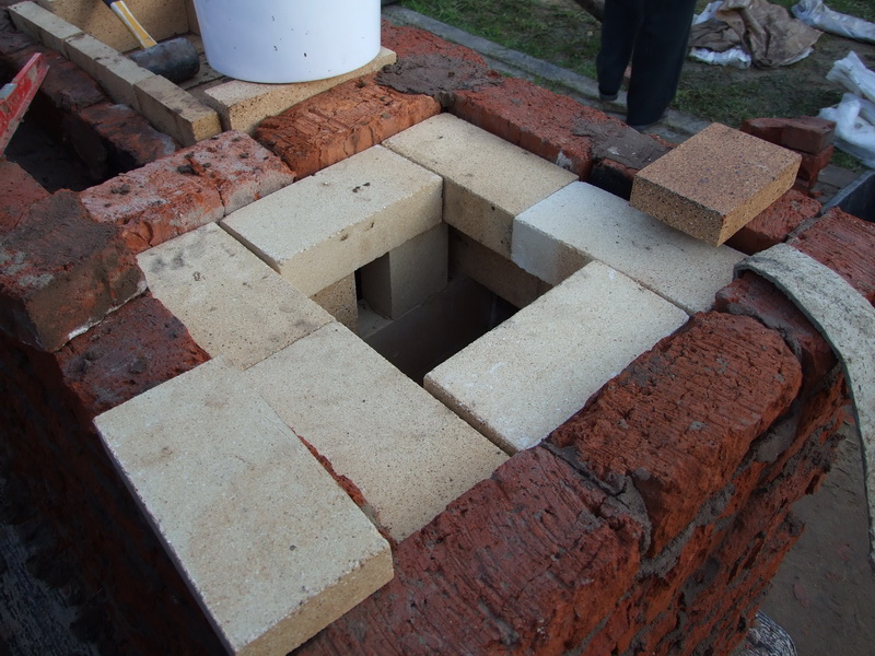 Укладываем на раствор и не забываем о проставке базальтового картона(или просто картона) между внешней кладкой и шамотной