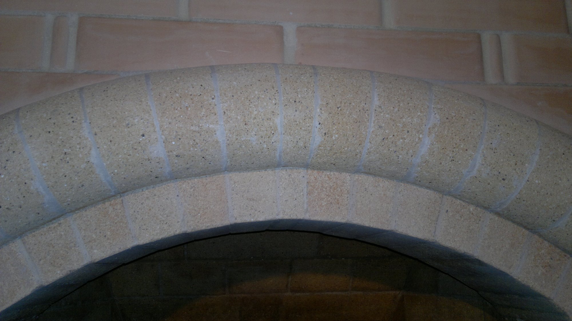 Внешняя облицовка не связана с ядром камина... Она стоит отдельно (включая вторую арку, проложен базальтовый картон), поэтому не греется... Все углы армированы стеклотканью... На печи я бы такие углы никогда не сделал, развалились бы нахрен