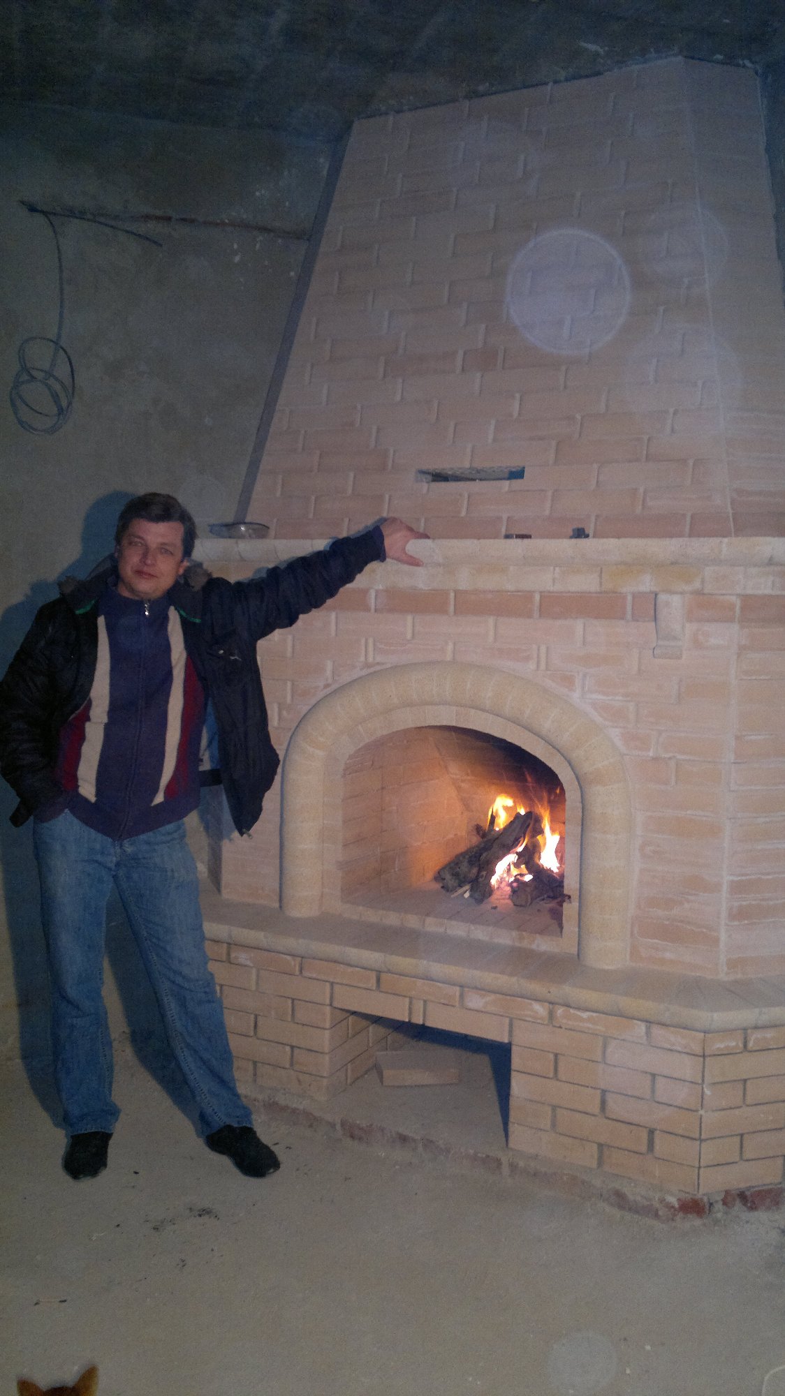 Ну вот я и закончил свой первый камин Ура я наконец высплюсь. Кладка внешней арки на белый раствор для пустотелого клинкерного кирпича привела к тому, что арку после завершения работ пришлось обрабатывать "напильником". Кирпич замачивал + раствор жидкий = засрал кирпич.