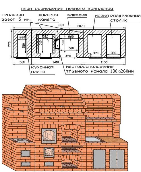 Вы нарисовали три кирпича -а где ещё впереди полкирпича которые должны впереди закрывать шамотную футеровку? Итого 3.5 кирпича 250+10+250+10+250+10+120=900мм И где вы видите 800мм? И это без теплоизоляции между шамотом (задняя стенка)50мм, и лицевой кладкой-уже 950 мм и прибавить на кратность размеров кирпича 70мм-будет 1020мм ширина. Но никак не 800мм-это будет полная халтура господин дизайнер. А как будете подключать дымоход от казана? Перегревать лицевую кладку?-которая потом треснет. Теперь доступна Вам информация от профессионалов? |
