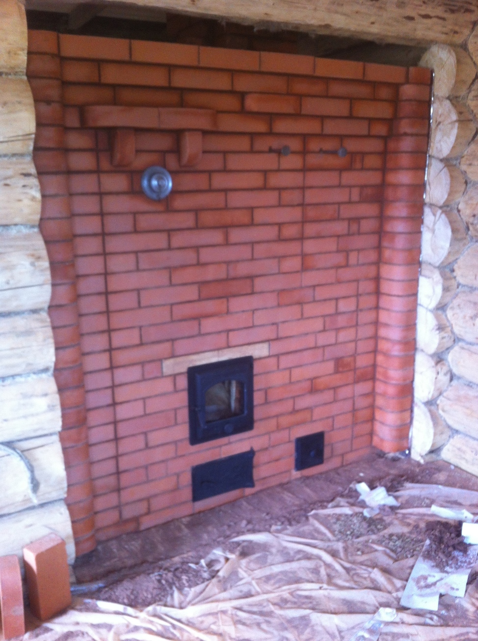 фотографировал ещё на стадии проектирования и подбора, но сегодняшняя не слишком различается. Болванки не круглые, а чуть приплюснутые, как бы овальные. Они так более устойчивей. На них проще установить плиту, чтоб при поддаче воды при банных процедура не попасть на кирпичную кладку, да и камни на таких расположить удобнее. Расползаться не будут. В общем исключаем любое воздействие и давление на стенки печи.