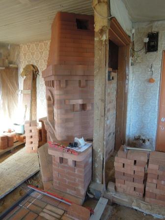 Уважаемые печники! В субботу проверял работу камина и печи. При направлении ветра от конька к трубам. Всё работало. Сегодня дул сильный порывистый в направлении от труб к коньку. При сильных порывах часть дыма выдувает из топки в помещение. Все параметры камина были указаны выше. Вопрос: при таком расположении труб и расстоянии между ними (как на фото) будет ли такое расположение (почти на одной оси перпендикулярно коньку) влиять на ухудшение тяги в камине (каминная труба - та, что повыше, нижние ряды из красного). Уточню: в дальнейшем каминную трубу нарастил ещё на 2 ряда выше, чем на фото. Точно не помню, но вроде бы она вышла всего на 1 см выше печной. Печная на 50 см выше конька, отстоит от конька сантиметров на 40. Ближайшие друг к другу стенки труб отстоят одна от одной на 90 см. В итоге каминная отстоит от конька где-то на 2 м. В дальнейшем решил проверить, как влияет печная на каминную и наоборот, убрал с печной трубы 5 рядов (кирпич полуторный), высота печной стала всего на 1 см выше конька, а каминная, соответственно, возвысилась на 50 см над печной. Эффект: печь работает прекрасно во всех режимах, несмотря на направление ветра от трубы к коньку и высоту почти вровень с коньком и на расстояние от конька всего 40 см. Камин по прежнему дымит, несмотря на то, что каминная труба на 50 см выше конька и выше печной трубы и несмотря на то, что отстоит от конька на 2м. Вывод: расположение труб здесь не причём? Причину в другом искать следует? Каминную трубу в дальнейшем разобрал до уровня крыши. Предполагаю разобрать до шибера и увеличить её сечение, поставить новый ещё больший шибер.Размеры ещё не знаю. Интересуюсь у специалистов. Подскажите, рационально ли увеличивать трубу до 3-х кирпичей внутренним сечением при портале 88х56х44 см? Или лучше вывести на, скажем 31,5х26,5 см (предположим) с последующим добавлением 5 см кусочков в кладку? И ещё вопрос: наличие колпака над каминной трубой, как считаете, решило бы проблему дымления в этой ситуации?