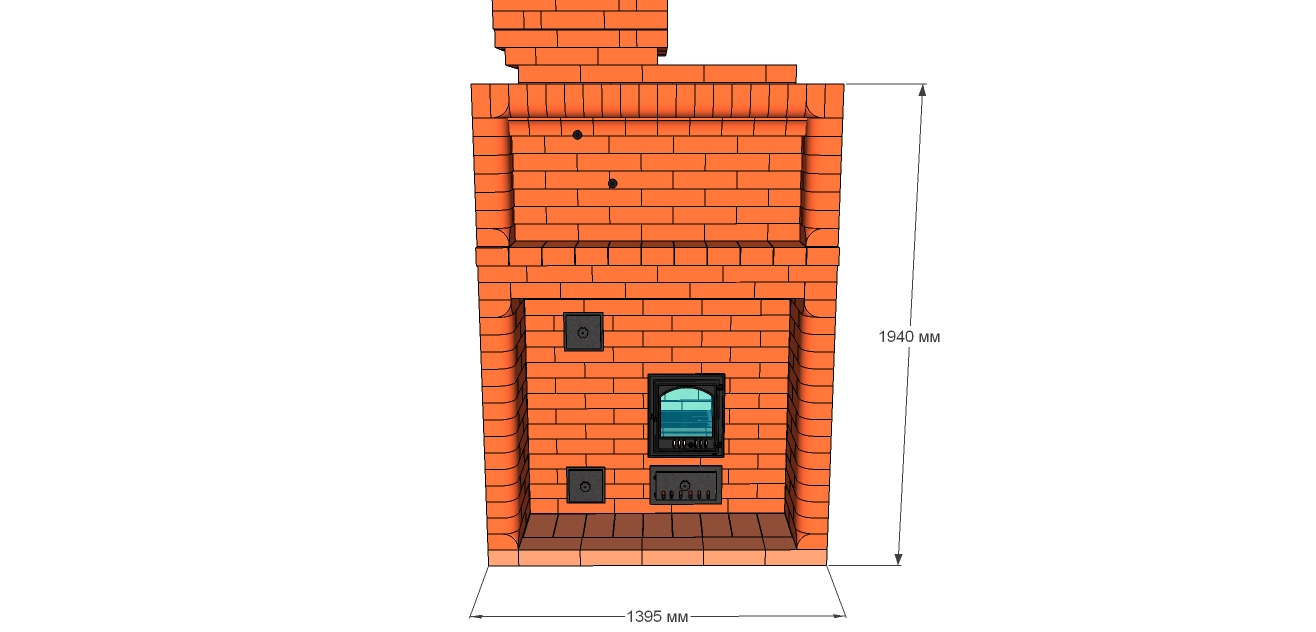 Несколько смущают кирпичные "крылья"-экраны вокруг печи.