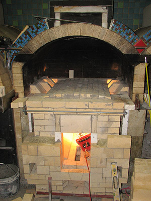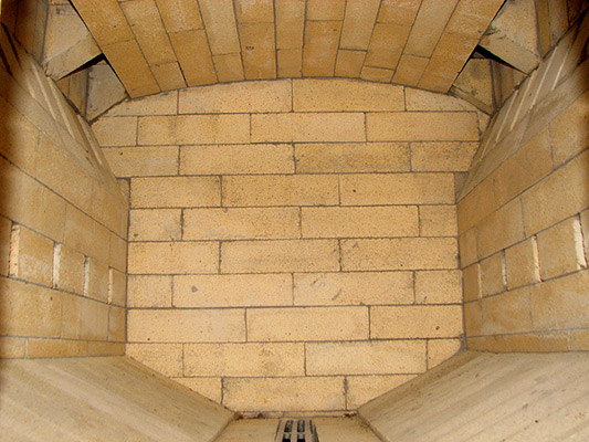 Я и не фотографировал, потому что получилось плохо. Я делал дымоход внутри нижнего свода, в задней стенке канал с подвёрткой. Дымоотвод в верхнем своде, как у Чернова, я не захотел - надо было пламенный поток завернуть внутрь закладки. Свод получился толстый, многорядный, горелки более длинные. На верхнем своде собиралась сажа. Главный вопрос, который остался нерешённым - как снять весовую нагрузку с нижнего свода. Он лучковый, а другого там и не сделать, у меня он вышел в 4 ряда, в стены давит своим весом дай боже как, а на него ещё и закладку класть. Бандаж из уголка там уже не спасёт, по-моему. Чернов всё-таки делал какую-то духовку, не предполагая так нагружать свод. Ну и в закладке надо чугунные болванки класть, всё остальное рано или поздно забьёт горелки.