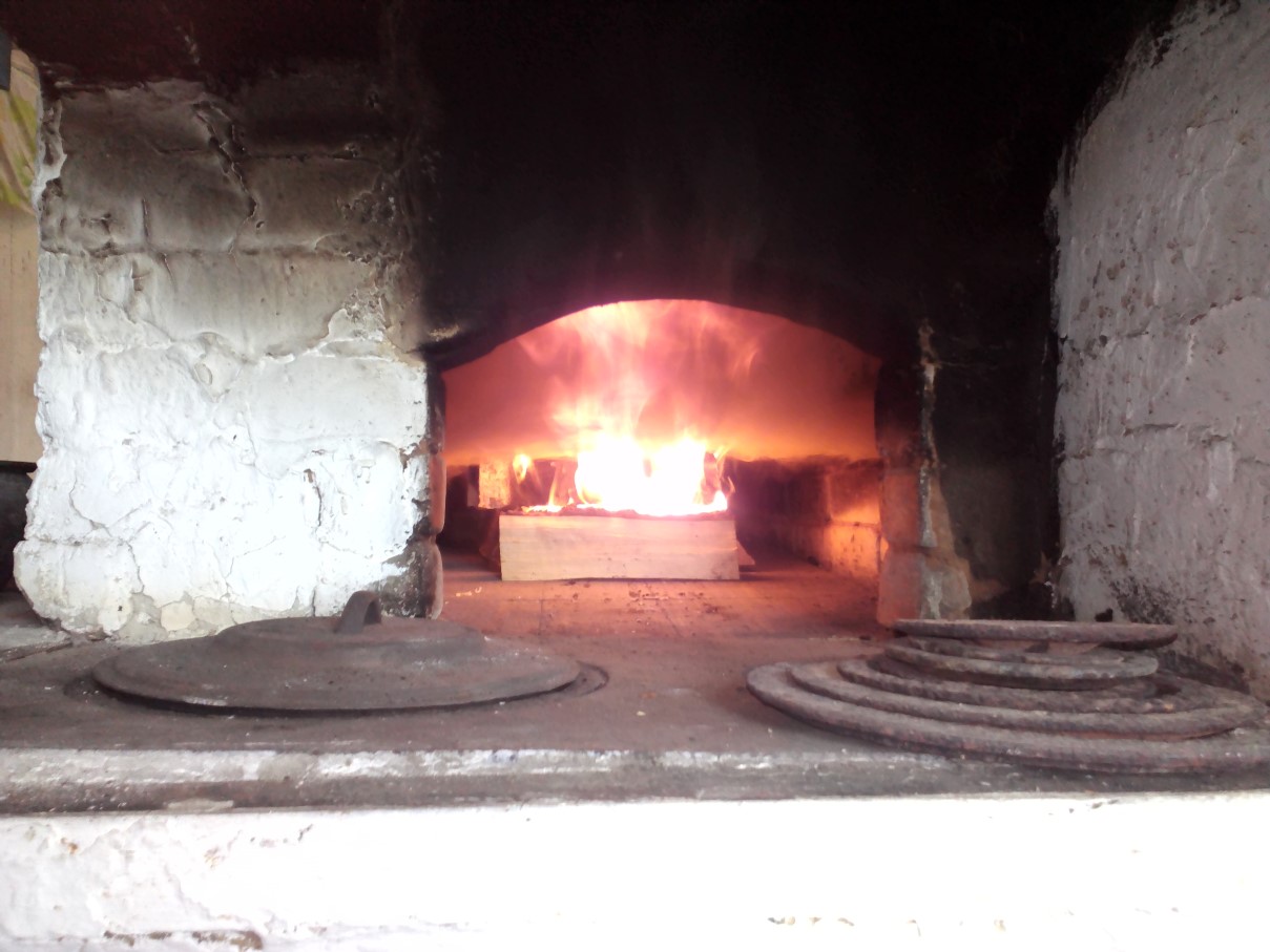 Ну а так она топится.По моему такая фотография должна быть во всех пособиях по эксплуатации русских печей. Здесь наглядно видны принцип работы, мудрость, простота и гениальность подового горнила. Ну а дым, как разгорится, естественно исчезает.