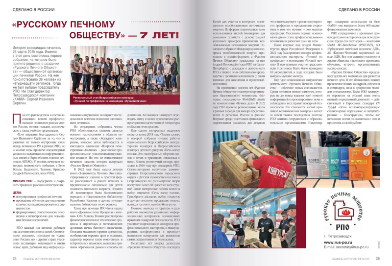 В журнале «Камины и отопление» вышла статья о Русском Печном Обществе в рубрике «Сделано в России»!
