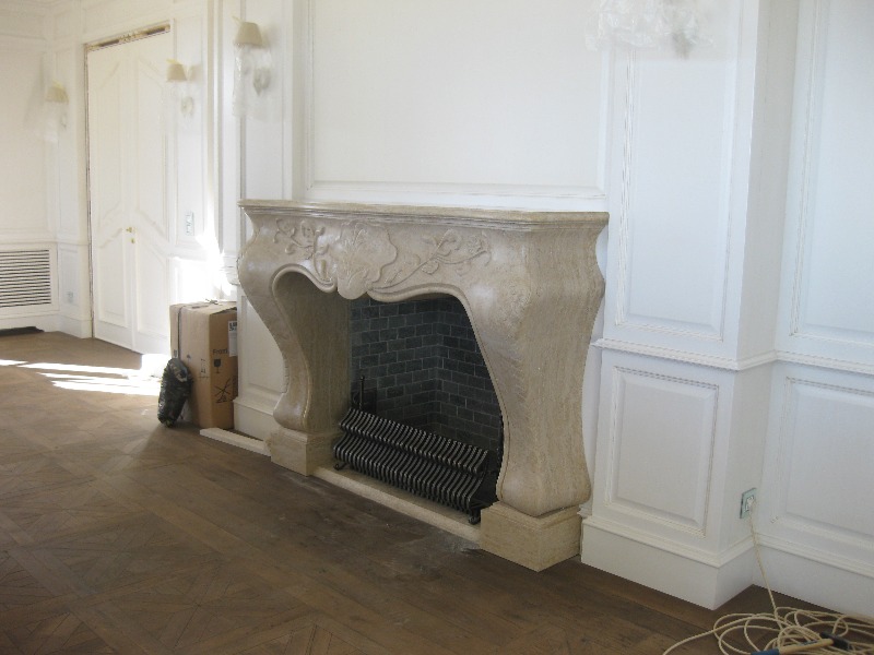 А техзадание металлическую трубу поставить-для кирпичной нет там места ,да и ограничения по весовым нагрузкам на стены и фундамент. Да и смещений труб от оси достаточно много из-за других коммуникаций. Архитекторы не предусматривали кирпичные камины. Планировались евротопки с металлическими сэндвич трубами. А портал в одном из каминов не меньше вашего- 1.5мХ1.2м.