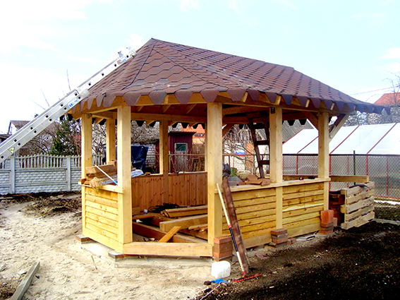 Позже заказчик беседку пролачил и она "шокорлад" потеряла. Немного был расстроен