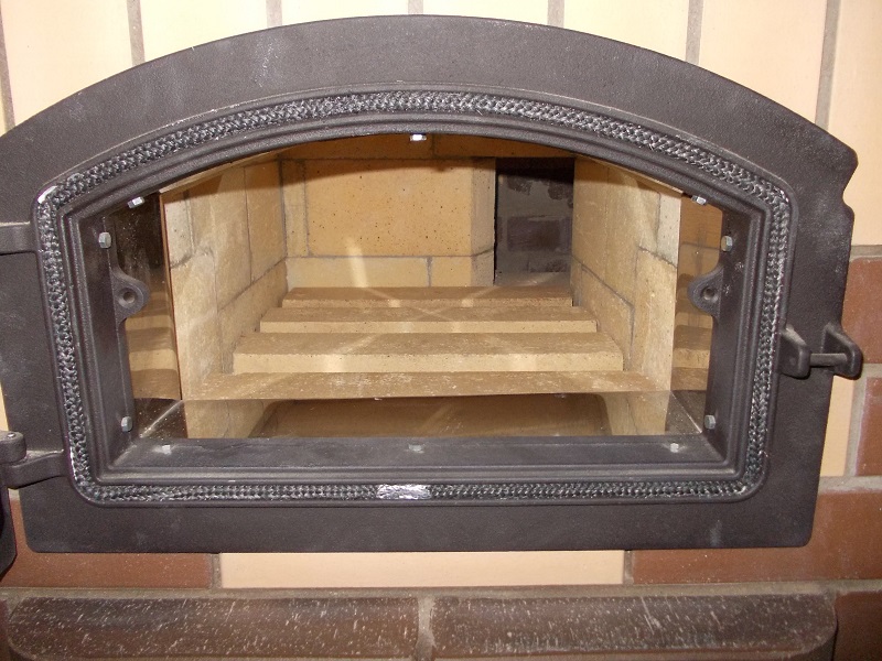 Крышка дверки оснащена вставным стеклом германской фирмы "ROBAX", максимальная температура устойчивости 760 °C.