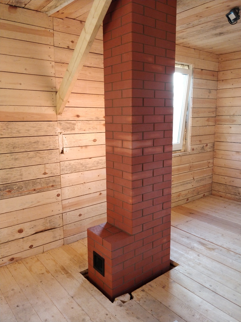 Дом очень низкий одноэтажный переделка бывшего деревенского дома высота потолков 190см печь хотели в 26 рядов делать но по факту де 27 рядов вышло . На крыше стоит труба сендвич 150 мм сечение к нему будем присоединятся.