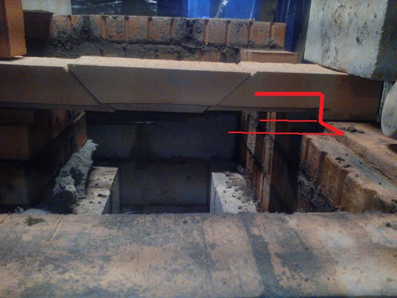 | Над топкой нависает красная стенка в ней клин снизу надо защиту делать. То есть дублировать перемычка ( или клин) шамотная вата а потом красный это самое тепло нагруженное место в печи . ( |