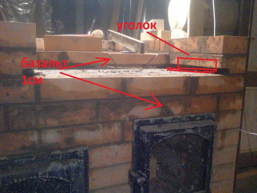 Кирпич над топкой проложил на 1 см базальта без раствора.Или намочить и положить 2 по 1 см?