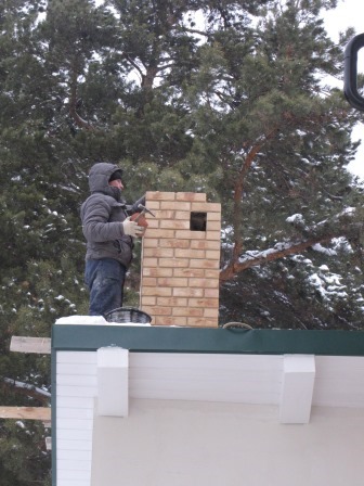 Комплекс барбекю стоим в тепляке а трубу приходится строить так, благо на улице всего -7 ,правда ветерок задувает.