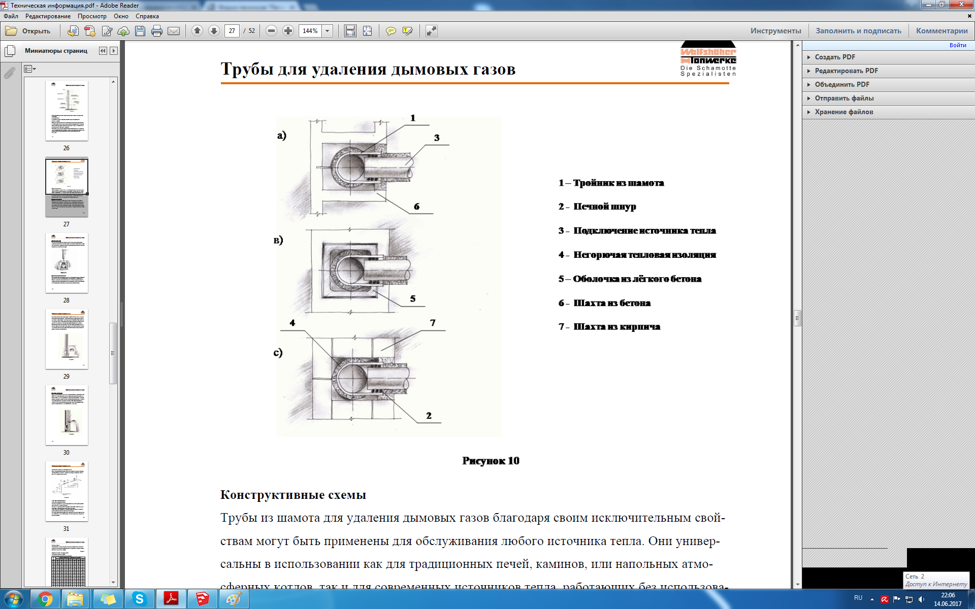 "Рисунок 10 иллюстрирует положение внутренней трубы из шамота внутри различных