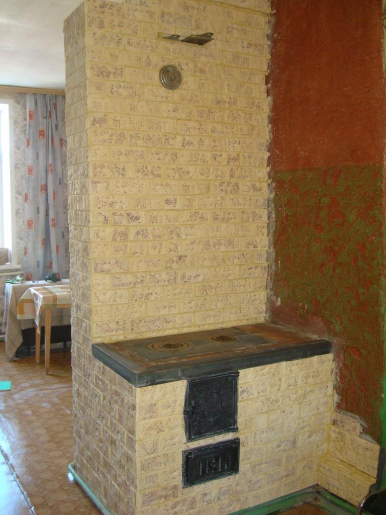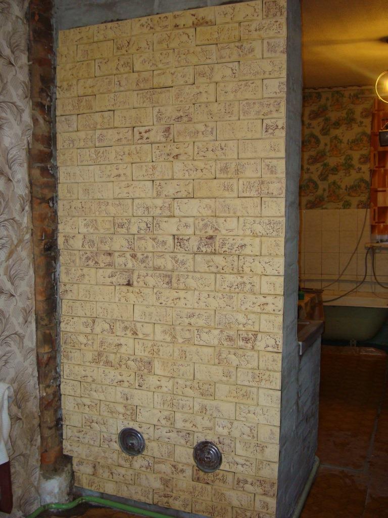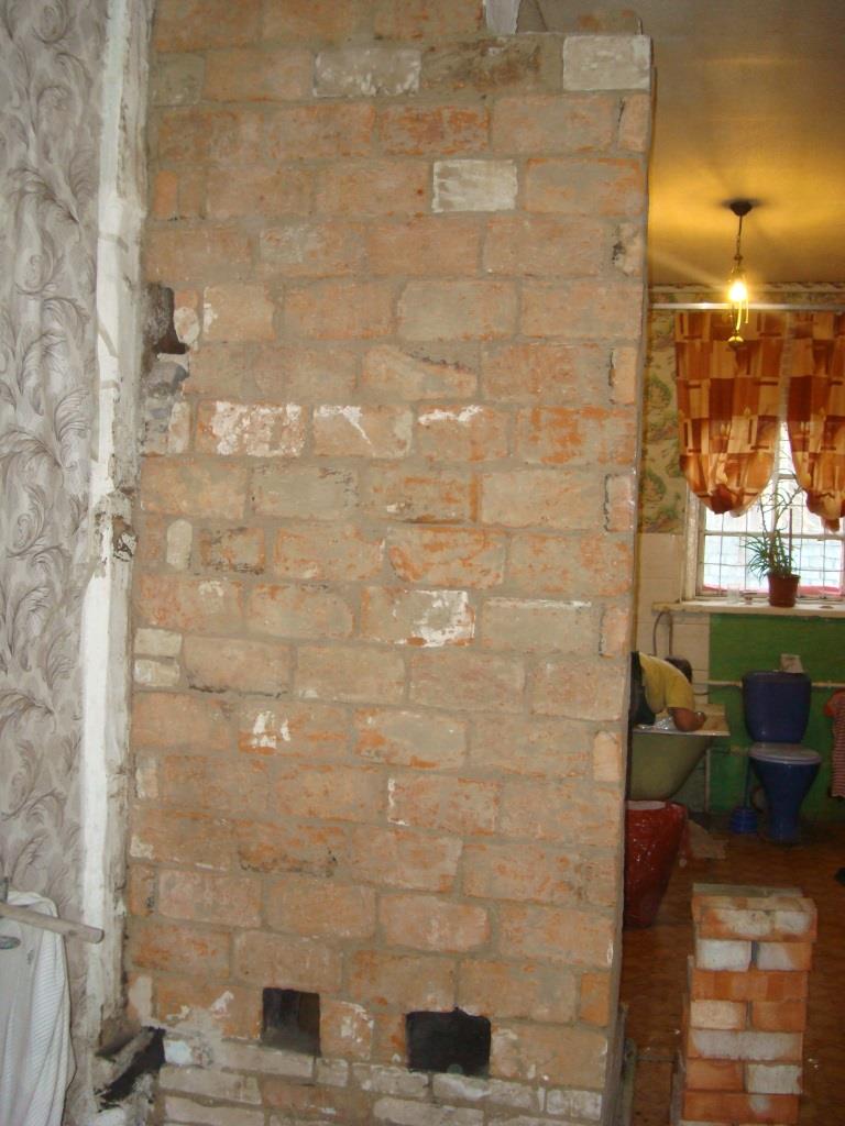 | Далее. Да в этой печи щиток на ребро но в кладке присутствует и силикатный кирпич.......Я его попытался убрать но не там то было раствор капец какой крепкий и если хочеш из кладки убрать кирпич то вся стенка звенит как монолит. Я не стал рисковать печь простояла 60 лет и кирпич в норме в щитке. |