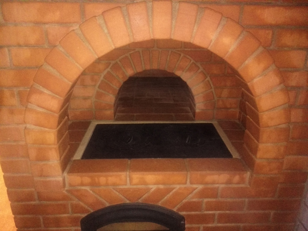 Мы вместе с заказчиком делали так. Затопили печь ( печь уже имеет трубу). Топили часа три, постоянно перемешивая песок на своде печи до тех пока он хорошо не прокалился. Далее на уголки с базальтовой обмоткой краев уголка - и два ряда кирпича. До сих пор радуется. Smile